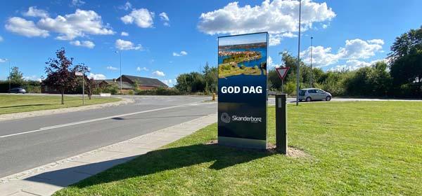 Så kan Skanderborg Kommune tilbyde dig optimal synlighed på fire pyloner, der står ved indfaldsvejene til centerbyerne Galten, Ry, Hørning og Skanderborg og pylonen ved Fælleden: