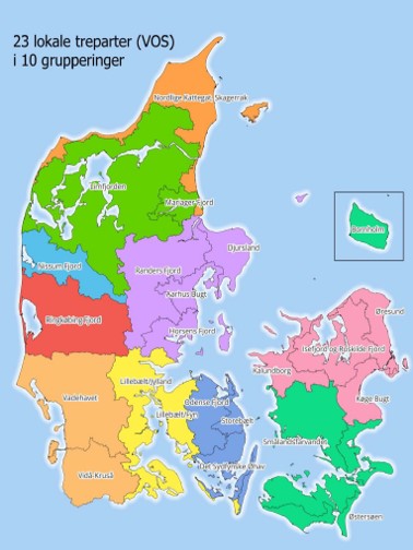 Skanderborg Kommune er en del af tre lokale treparter - nemlig Horsens Fjord, Aarhus Bugt og Randers Fjord.