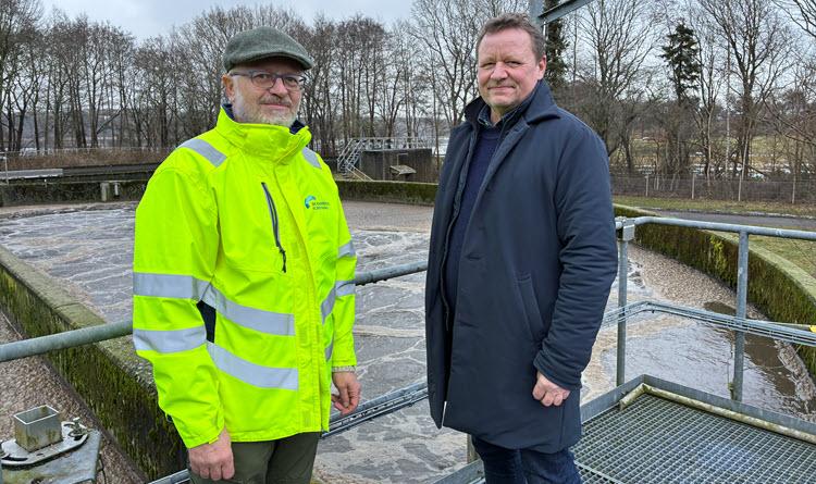 Den lokale presse (Midtjyllands Avis) var forbi Ry Renseanlæg mandag eftermiddag for at høre mere om udfordringerne med at rense spildevandet biologisk (Foto: Skanderborg Kommune).